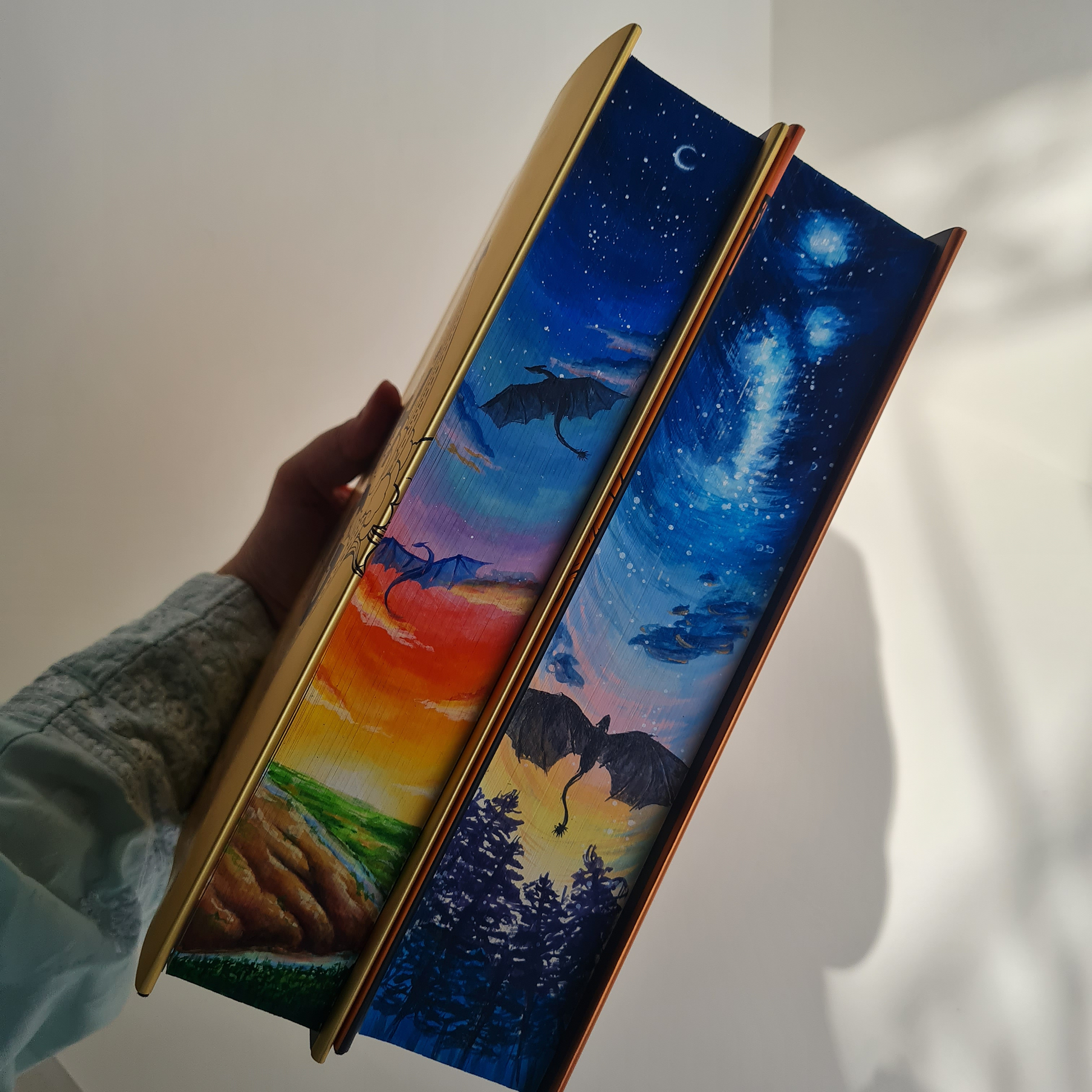 With this purchase, you place an order for a set of UK hardcover copies of Fourth Wing and Iron Flame by Rebecca Yarros, hand painted on the edges with watercolour and gouache. Your books will take 4 - 6 weeks for me to paint and get ready for shipping.